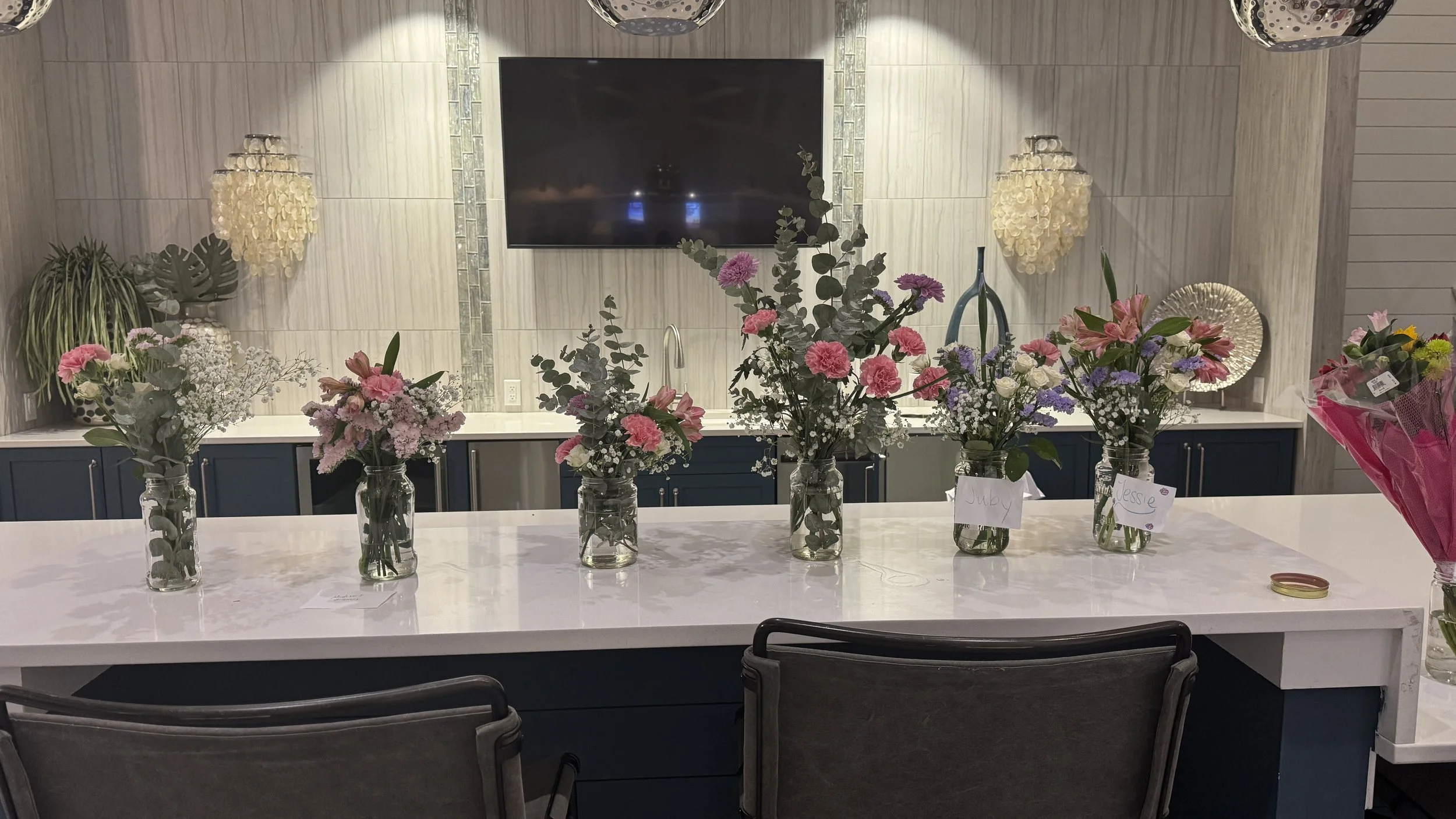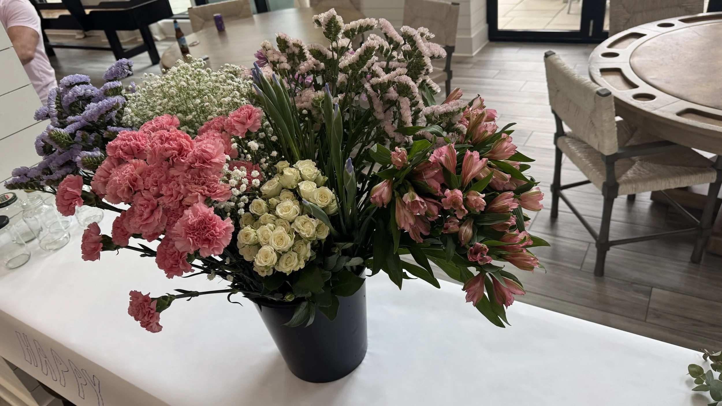 Now for my FAVORITE part of the party! We had a make your own bouquet bar!! This was so magical and something I’ve been wanting to do for so long. I love flowers and thought it would be so cute. We got our massive tub of flowers from a local flower farm about half an hour away. I’d never been to a flower farm before and it was so fun picking out everything.