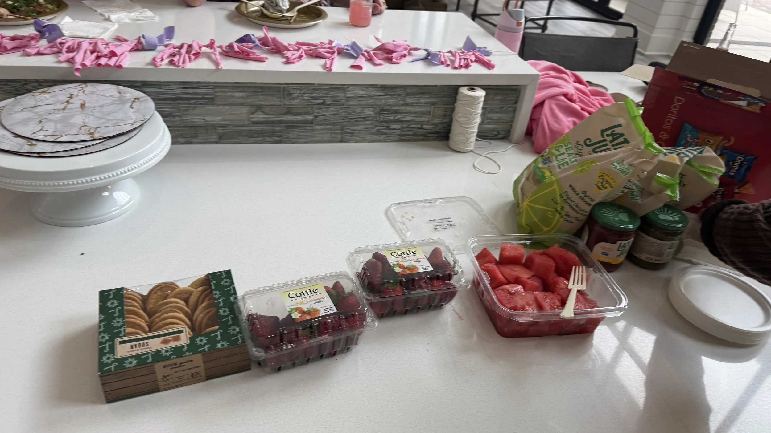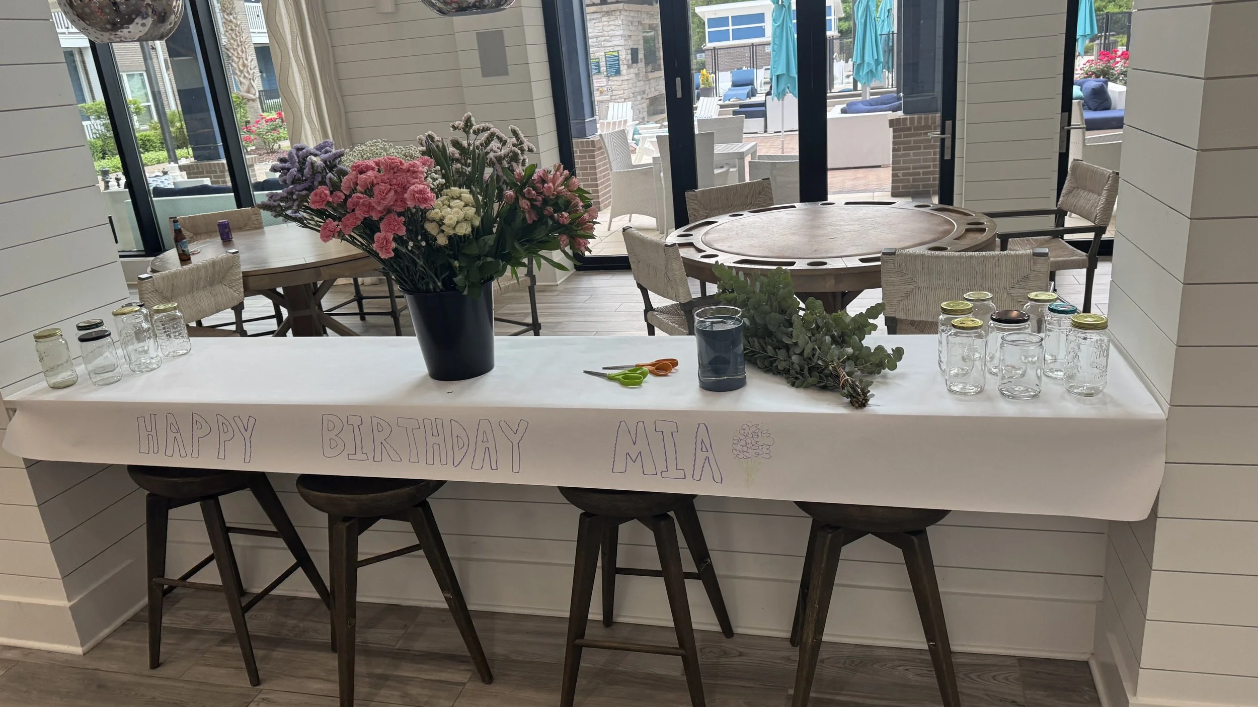 With the art supplies, games, and flowers there was already a lot going on and I am not a fan one time use decorations that just end up in a landfill. I did look into more sustainable options for party decorations but it was too expensive and not needed anyways!