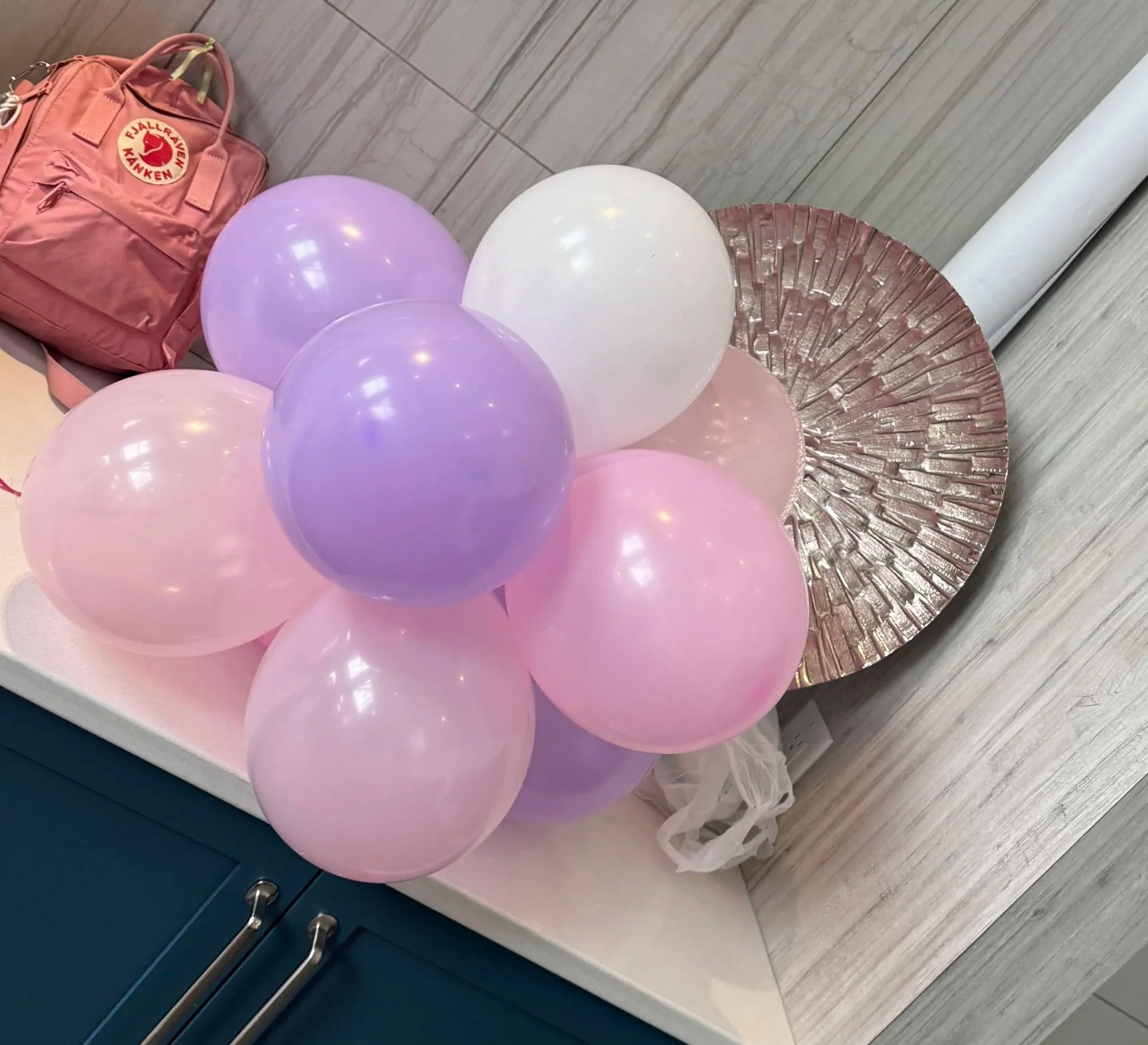 For decorations, we kept it pretty minimal. I made a banner out of cut up old tee-shirts that I knotted together which was cute! We also made balloon clusters from misc balloons we had laying around that we blew up ourselves and put together after watching about fifty TikTok tutorials.