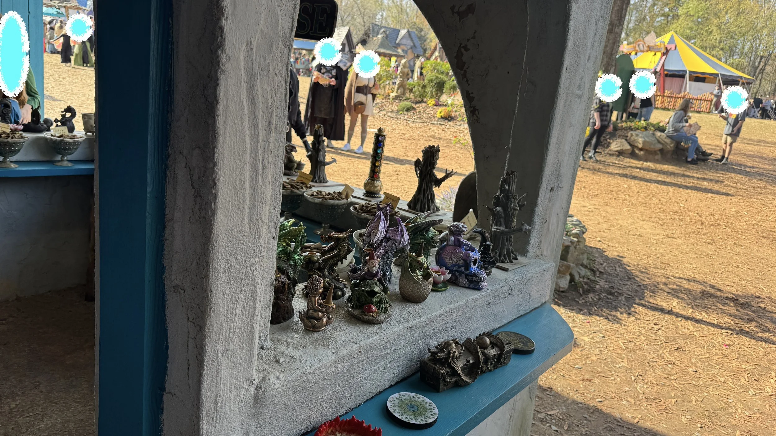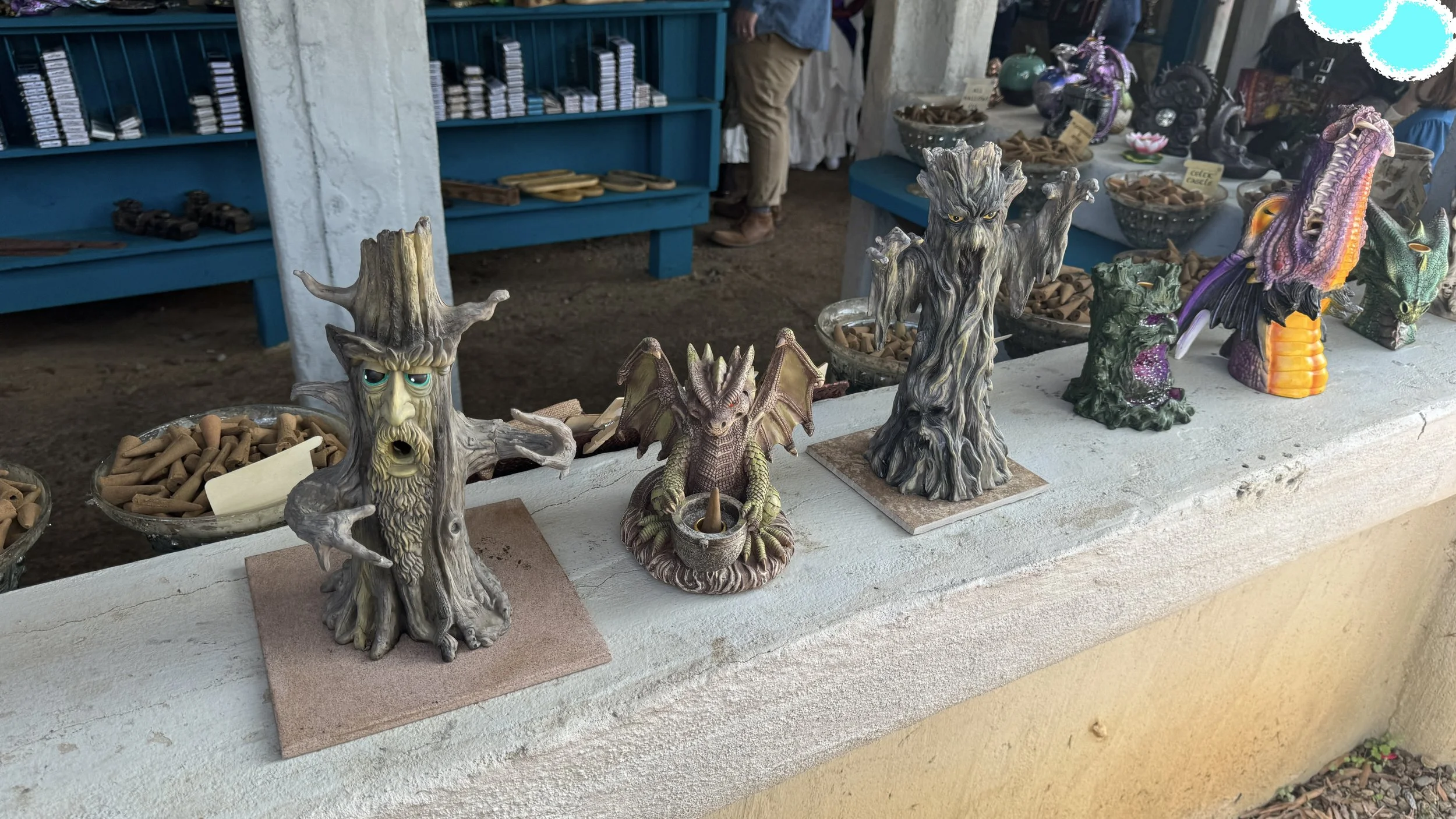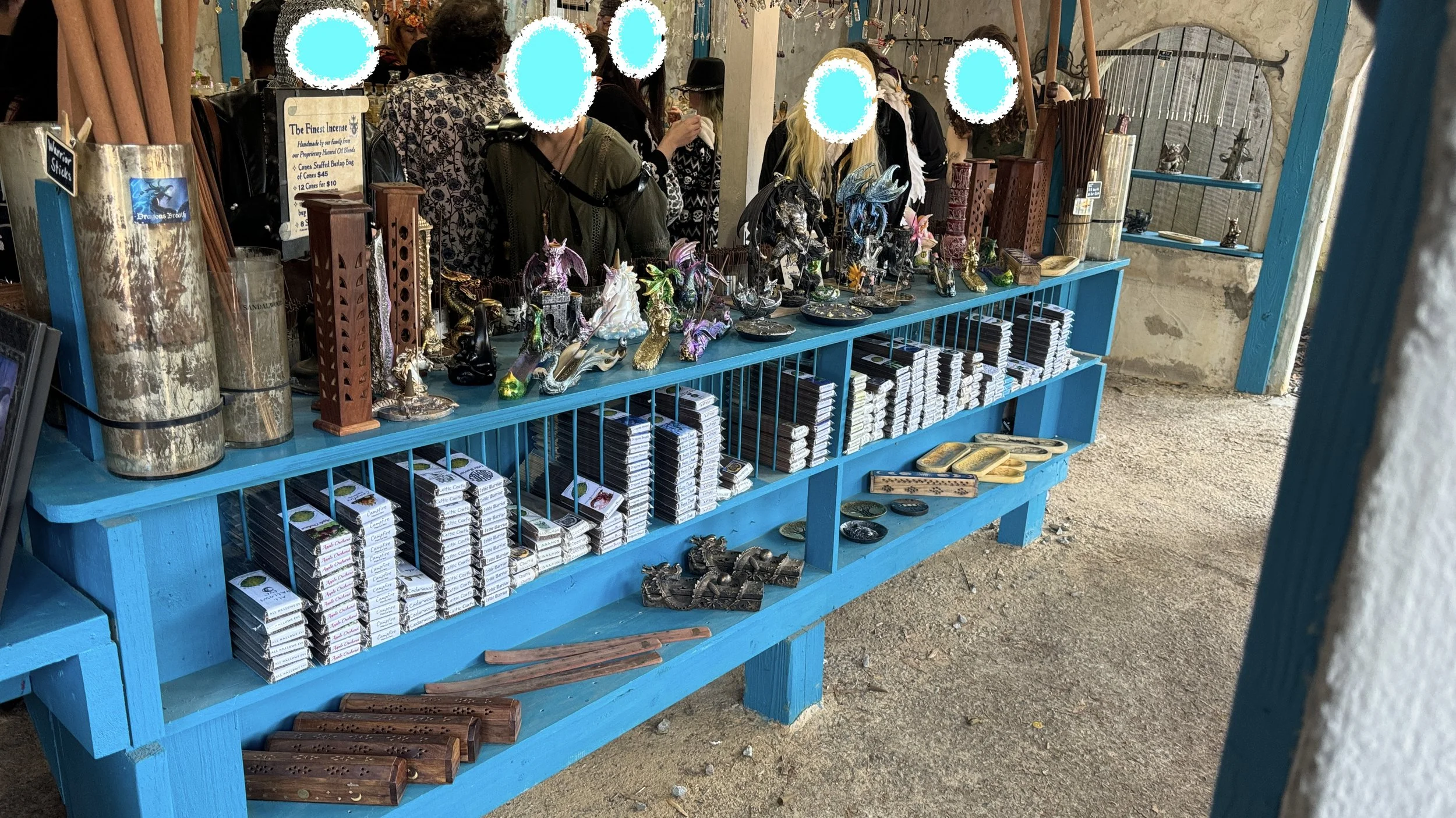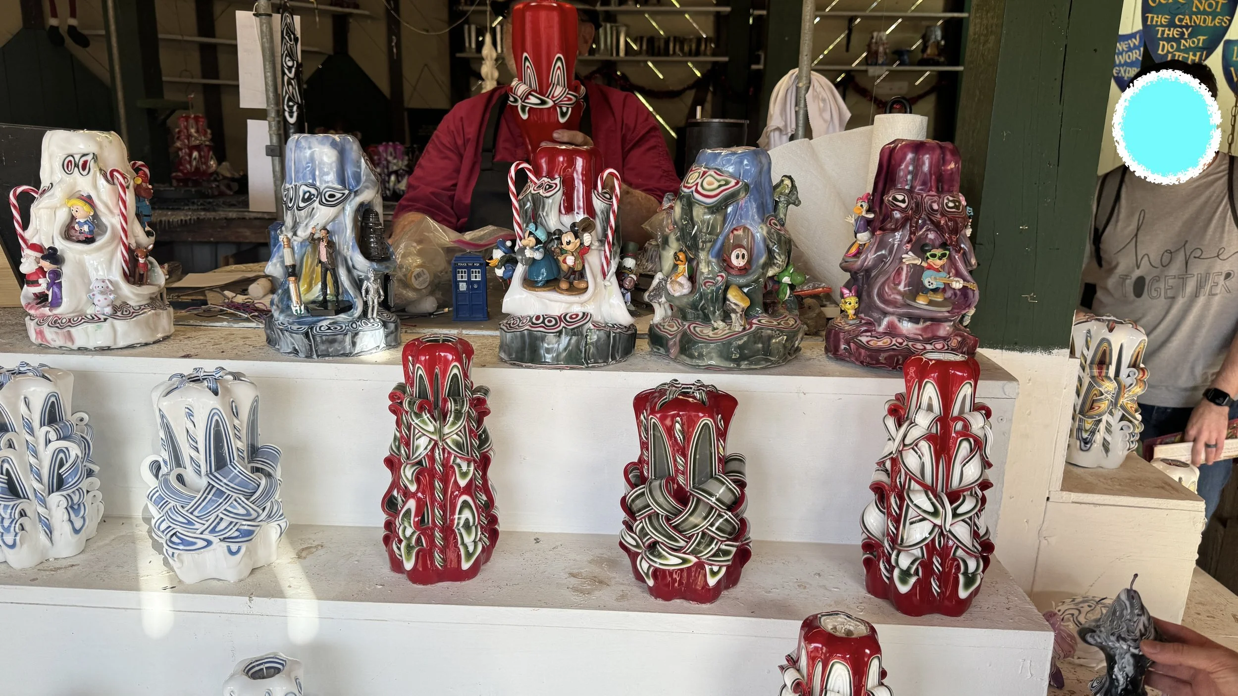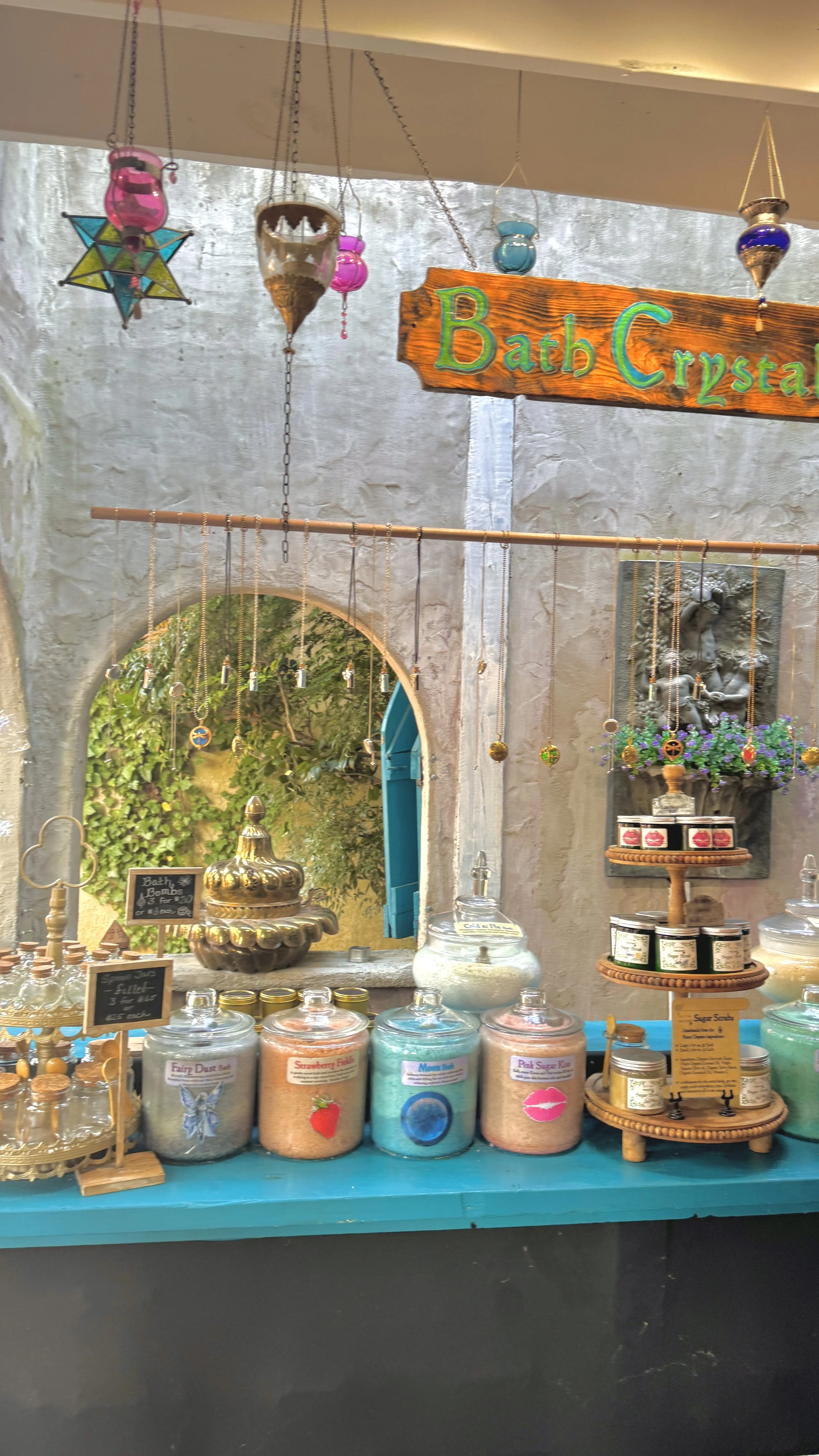 These are photos of vendor areas with whimsical and exciting things to browse and shop for! This also kind of shows the mermaid tank that we saw!