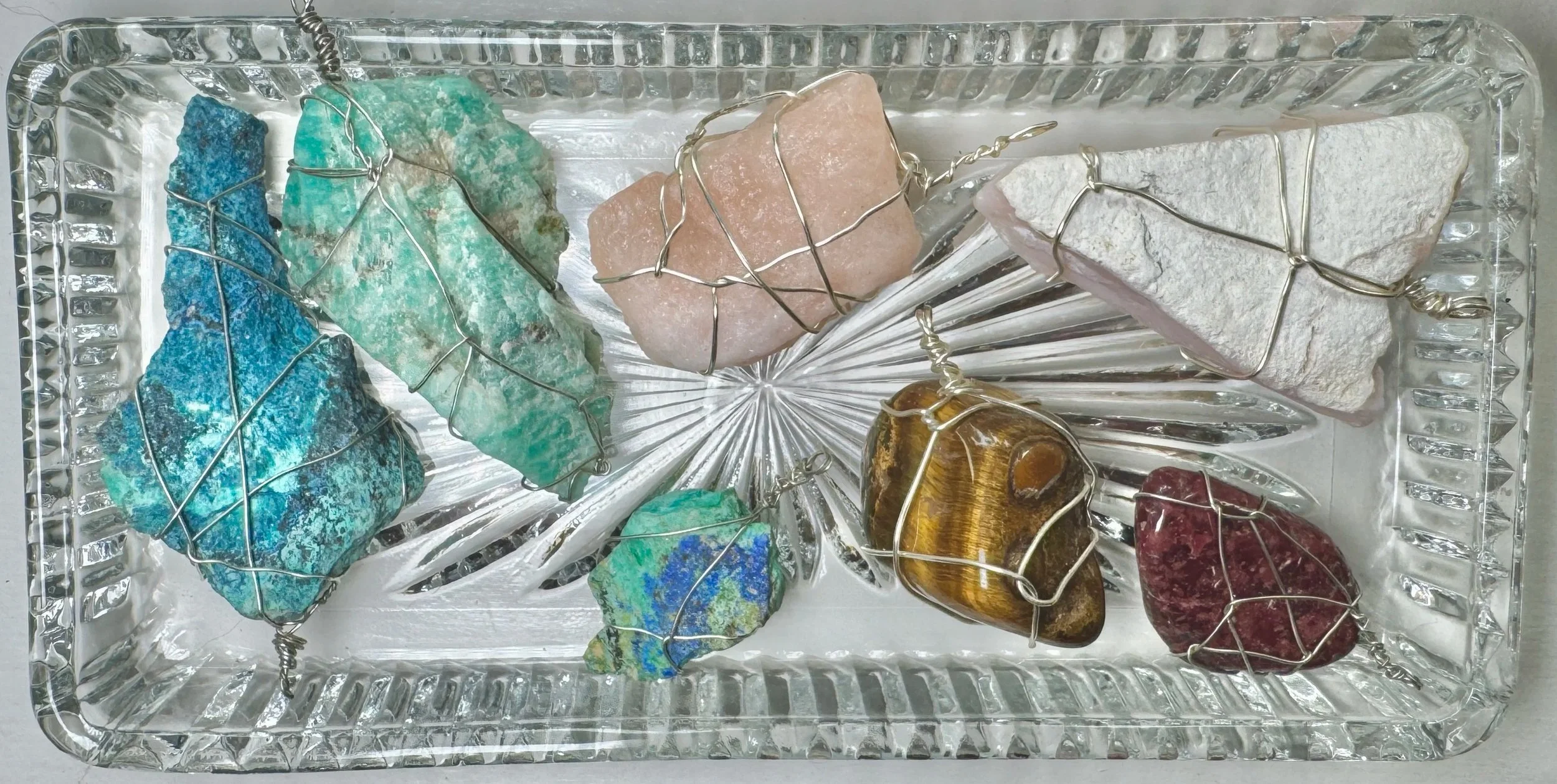 So last Christmas my dad gifted some gemstones and wire wrapping supplies. He knew I was into gems and crystals and had talked with my brother about wire wrapping before. I was really excited (mostly about the gems), but at first, I had no idea what I was doing. I got set up with some tools and just started messing around. It was frustratingly more difficult than all the photos and TikToks make it look lol. But I’m stubborn and like a challenge. Once you figure out how to secure your thing from the start and find a technique you like, it feels like you can wrap almost anything.